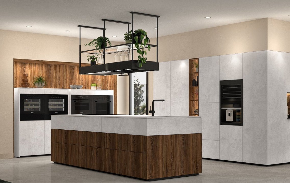 Le mélange subtil des couleurs et matières participe à l’effet graphique. Les tonalités sobres sont associées aux matériaux précieux (granit, grès, marbre, verre, bois nobles). Par exemple les duos ardoise/noyer, brun/quartz, noir/bois. La couleur peut s’inviter en détail ou dans sa globalité pour une cuisine design chaleureuse.