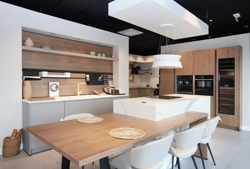 Vous recherchez un magasin de cuisine à Bressuire ? Notre équipe de cuisinistes professionnels vous accueille dans un espace dédié où nos collections sont exposées pour vous permettre de vous projeter, de toucher les matériaux et de choisir les finitions. Que votre style soit contemporain, rustique, ou moderne, nous disposons d’un large éventail de modèles pour chaque budget.