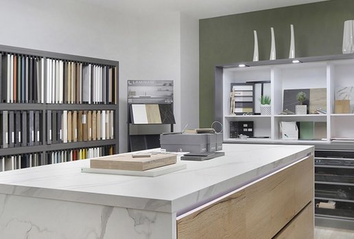 Nous vous présenterons l'ensemble de nos finitions, en matière de poignées, et de plan de travail, sans oublier la robinetterie.